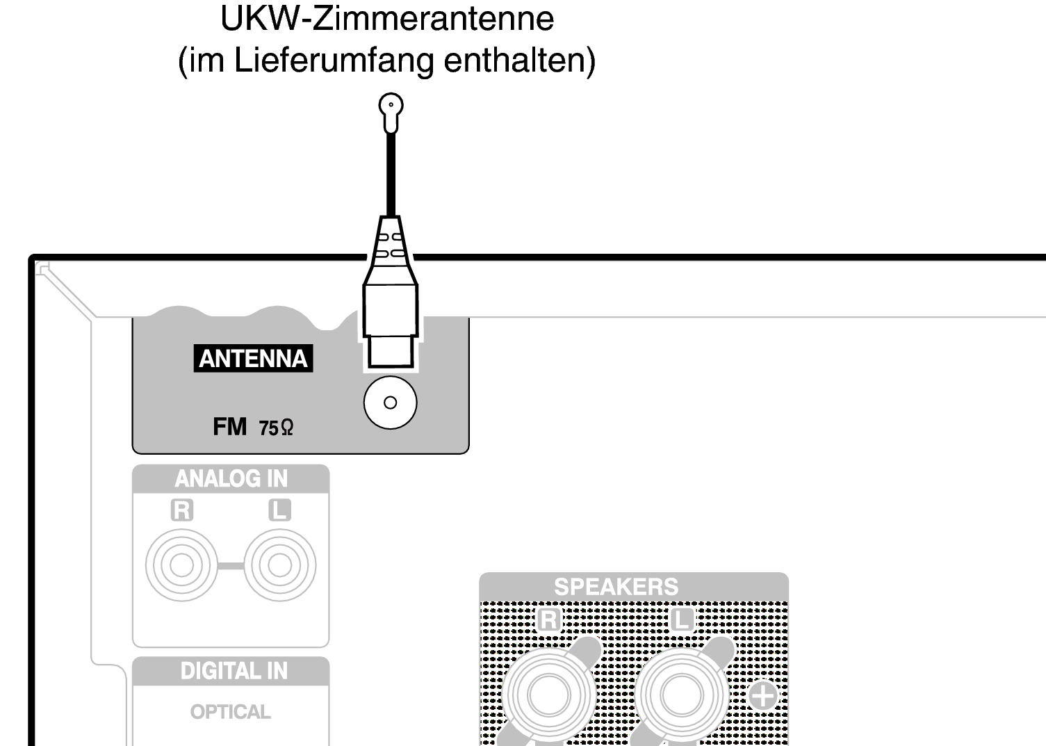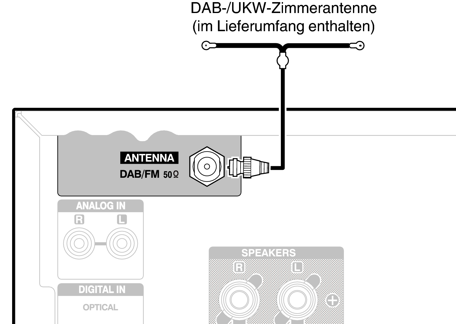 Wenn der Radioempfang nach dem Anschließen der Antenne einwandfrei funktioniert, fixieren Sie die Antenne mit Klebeband an einer Stelle, an der das Hintergrundrauschen am geringsten und die Klangqualität am besten ist. Wiedergabe von DAB-/UKW-SendungenLink