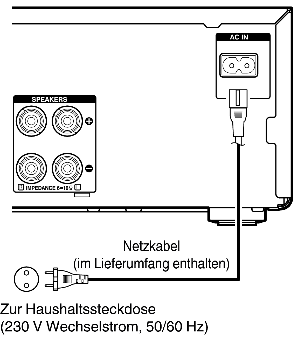 Wenn alle Anschlüsse hergestellt wurden, schließen Sie den Netzstecker an die Steckdose an.