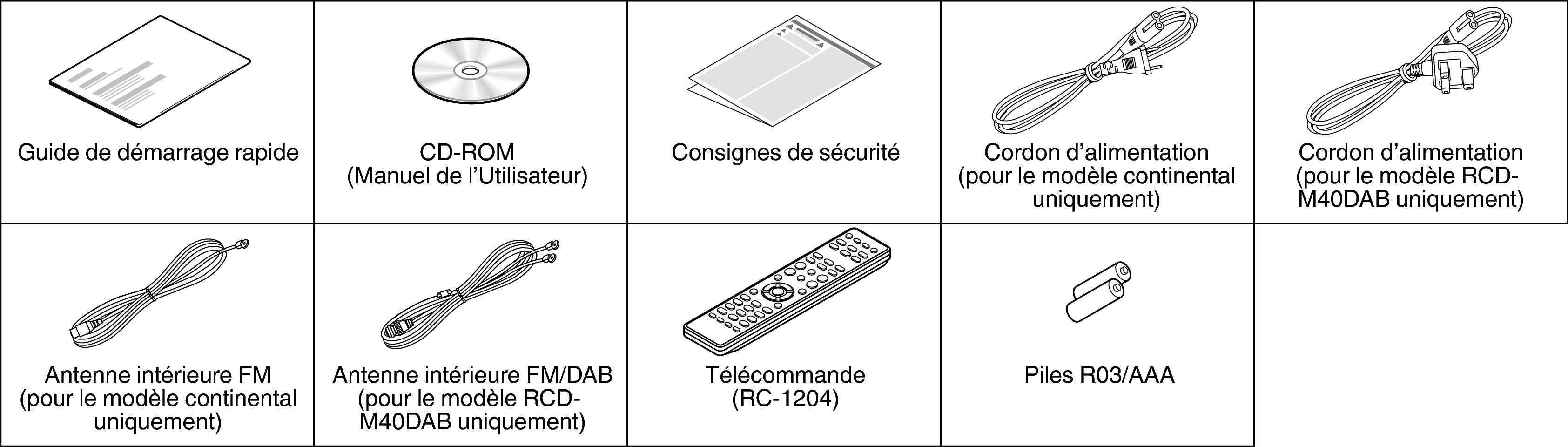 Assurez-vous que les articles suivants sont fournis avec l’appareil.