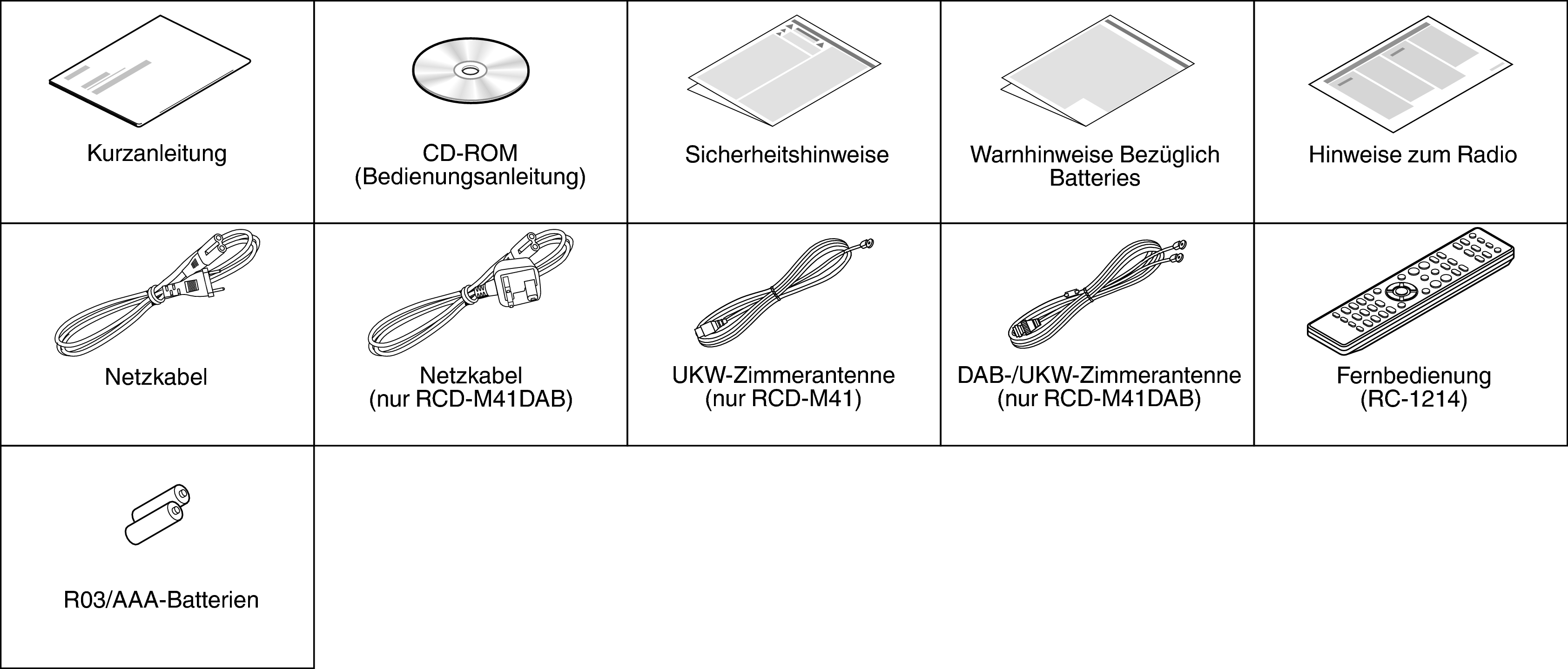 Überprüfen Sie, ob folgendes Zubehör im Lieferumfang des Produkts enthalten ist.