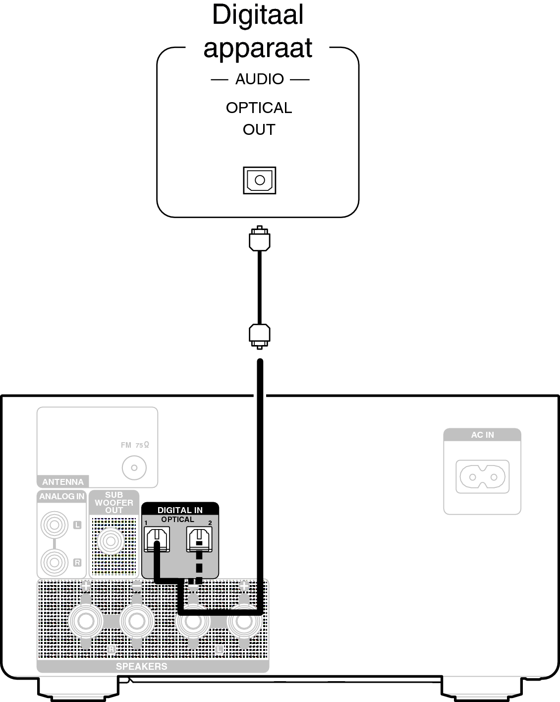 U kunt dit toestel aansluiten op apparaten met digitale audio-uitgang (TV, digitale apparatuur enz.).