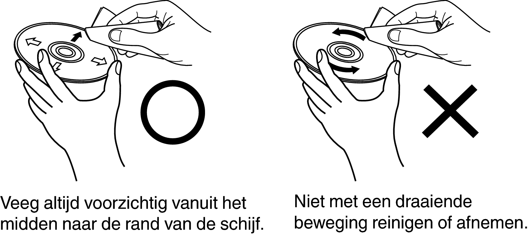 Voordat de schijf wordt gebruikt, moeten vingerafdrukken of vuil worden verwijderd. Vingerafdrukken en vuil kunnen de geluidskwaliteit benadelen en storingen in de weergave veroorzaken.
