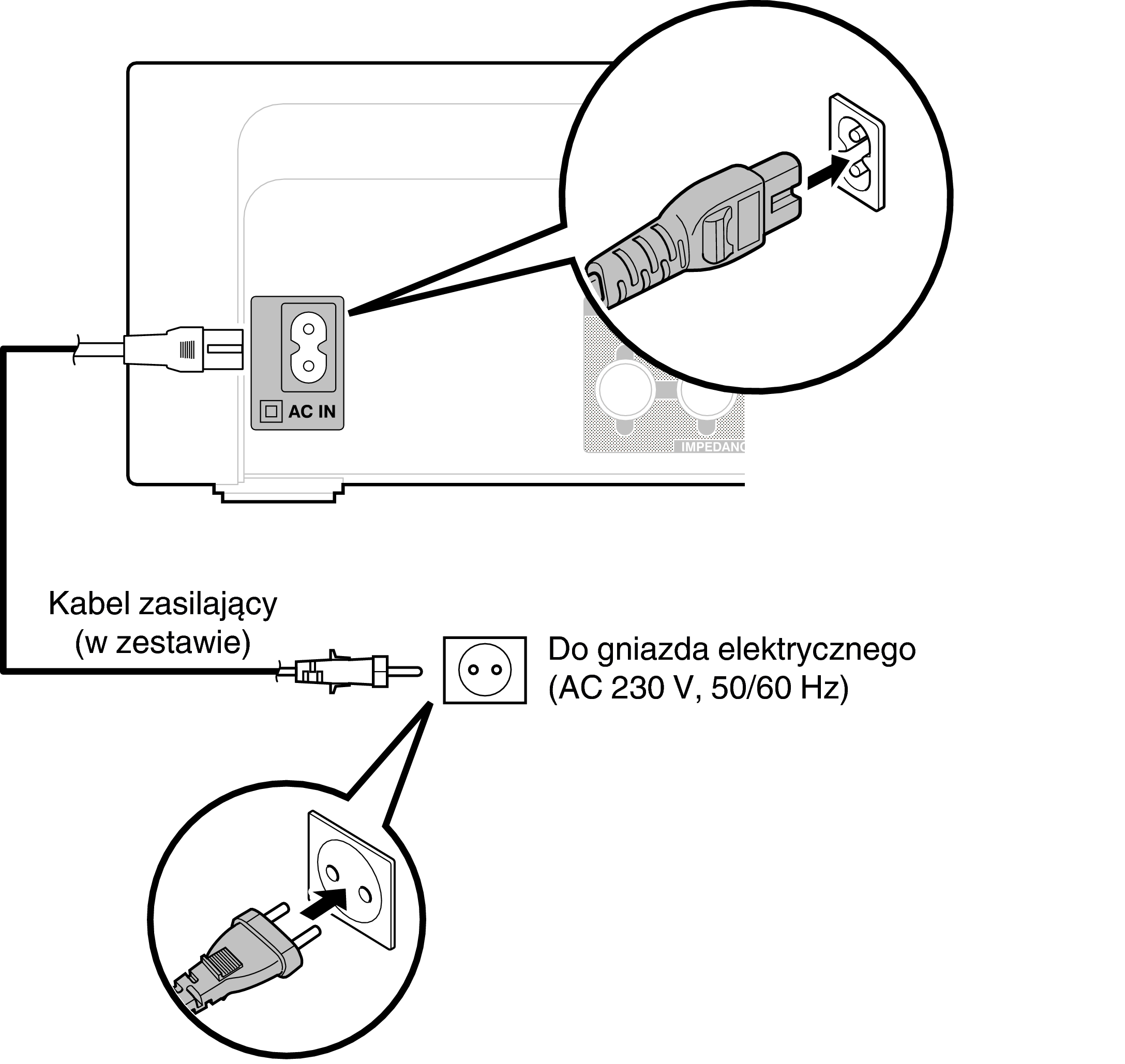 Po wykonaniu wszystkich połączeń włóż wtyczkę zasilania do gniazda sieciowego.