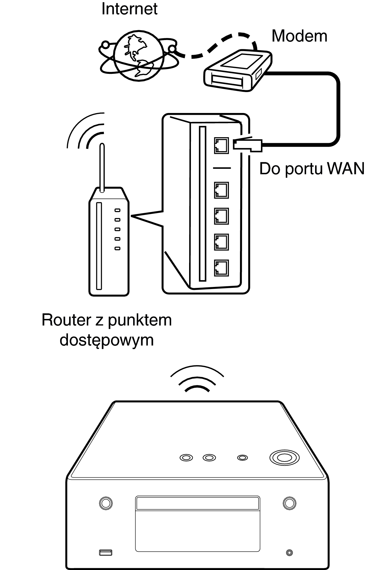 Nie podłączaj złącza NETWORK bezpośrednio do portu LAN/złącza Ethernet na komputerze.