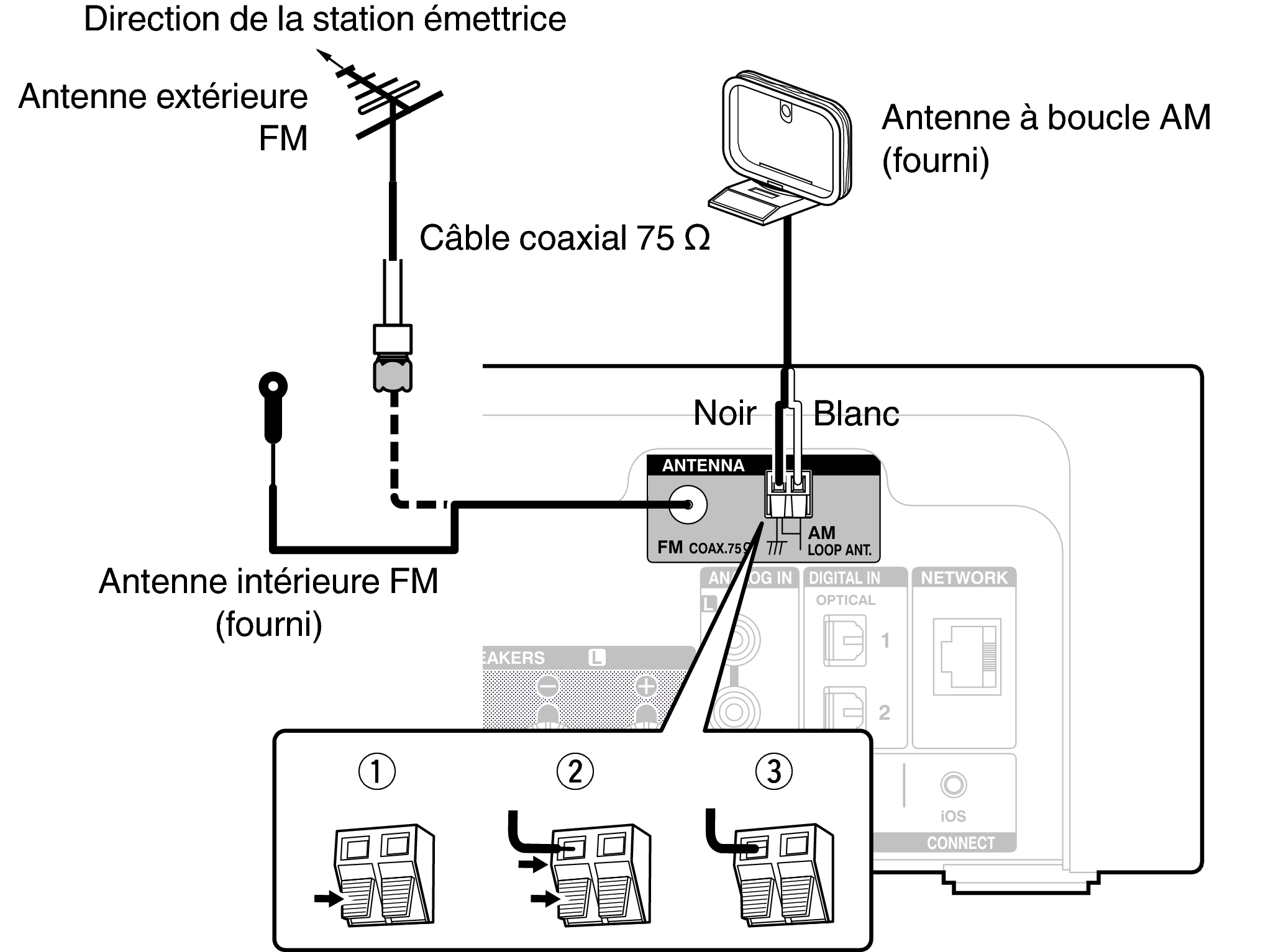 Ne pas débrancher l’antenne à boucle AM, même si une antenne AM extérieure est connectée.