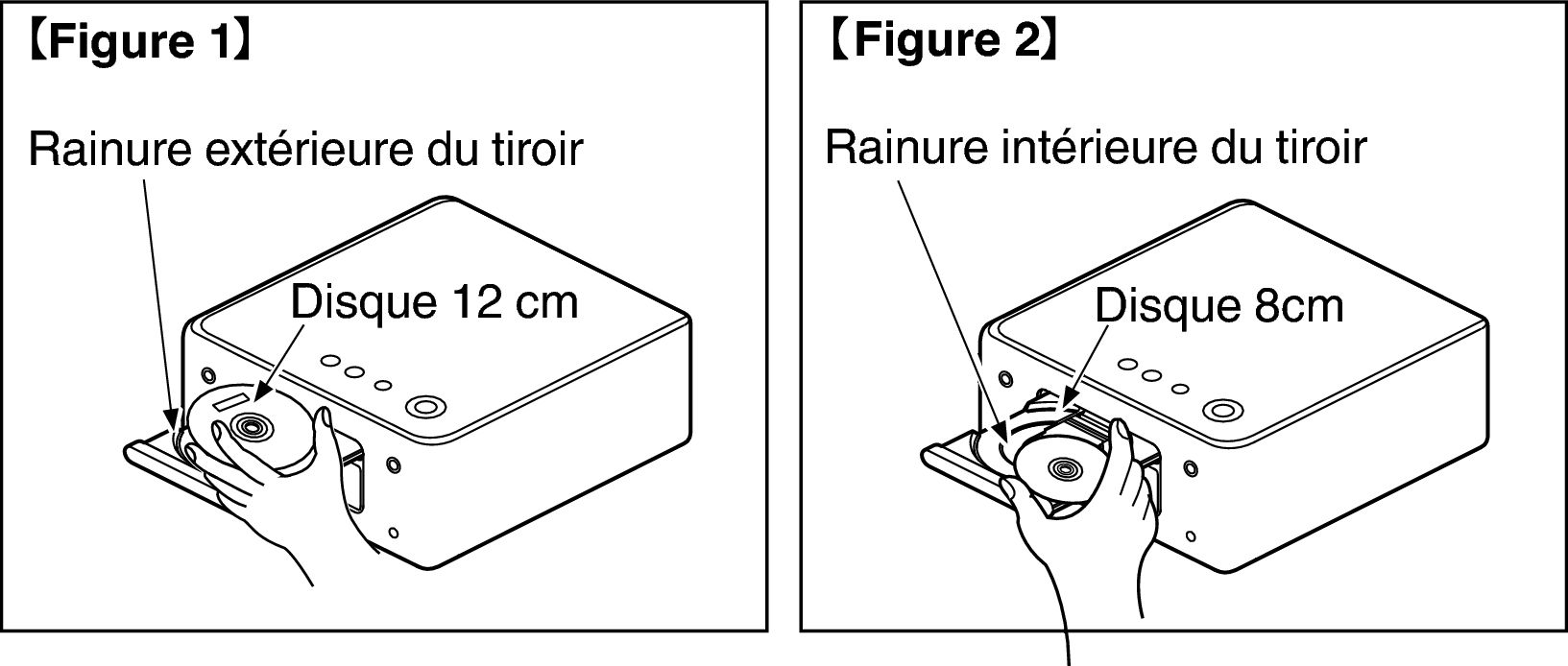 Placez les disques plat, les disques 12 cm dans le guide du tiroir externe (Figure 1), les disques 8 cm dans le guide du tiroir interne (Figure 2).