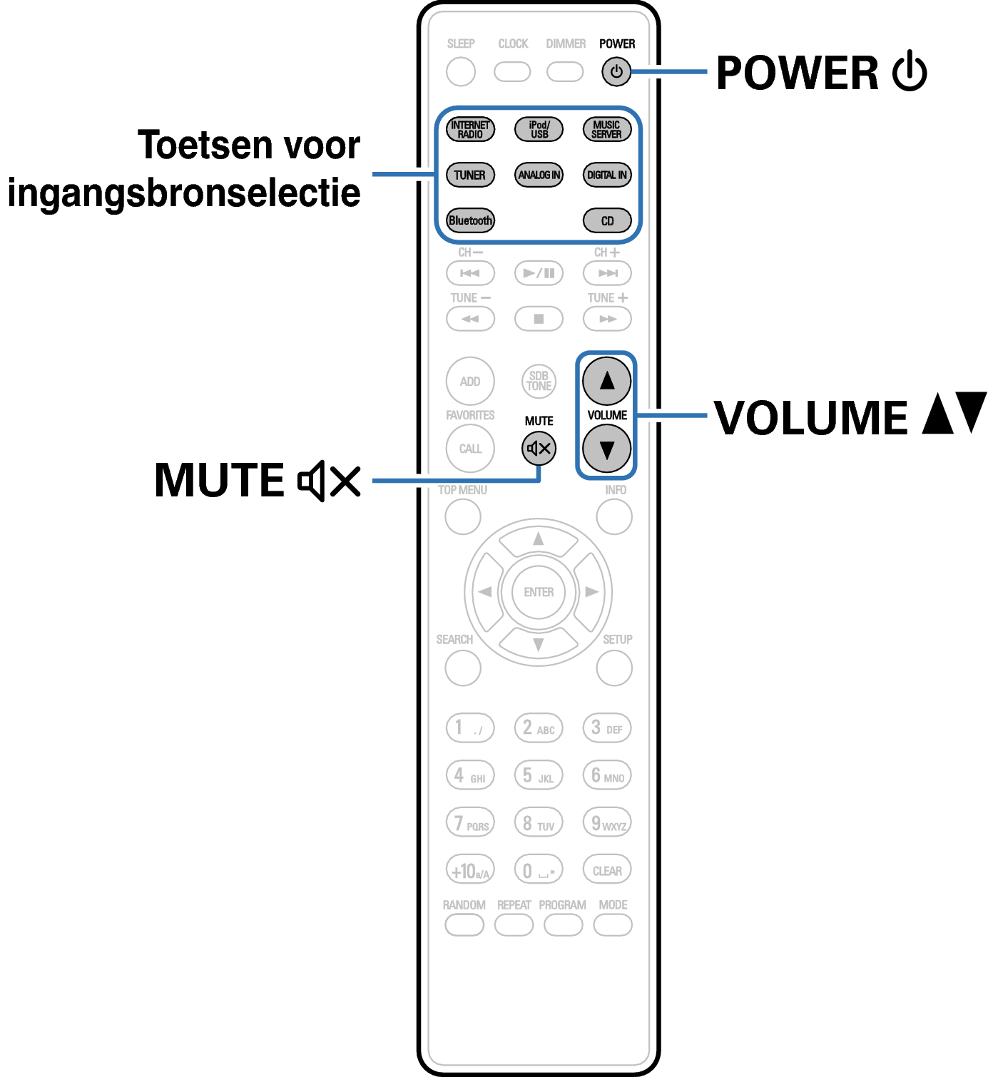 Toetsen op de afstandsbediening die worden gebruikt voor deze bewerking