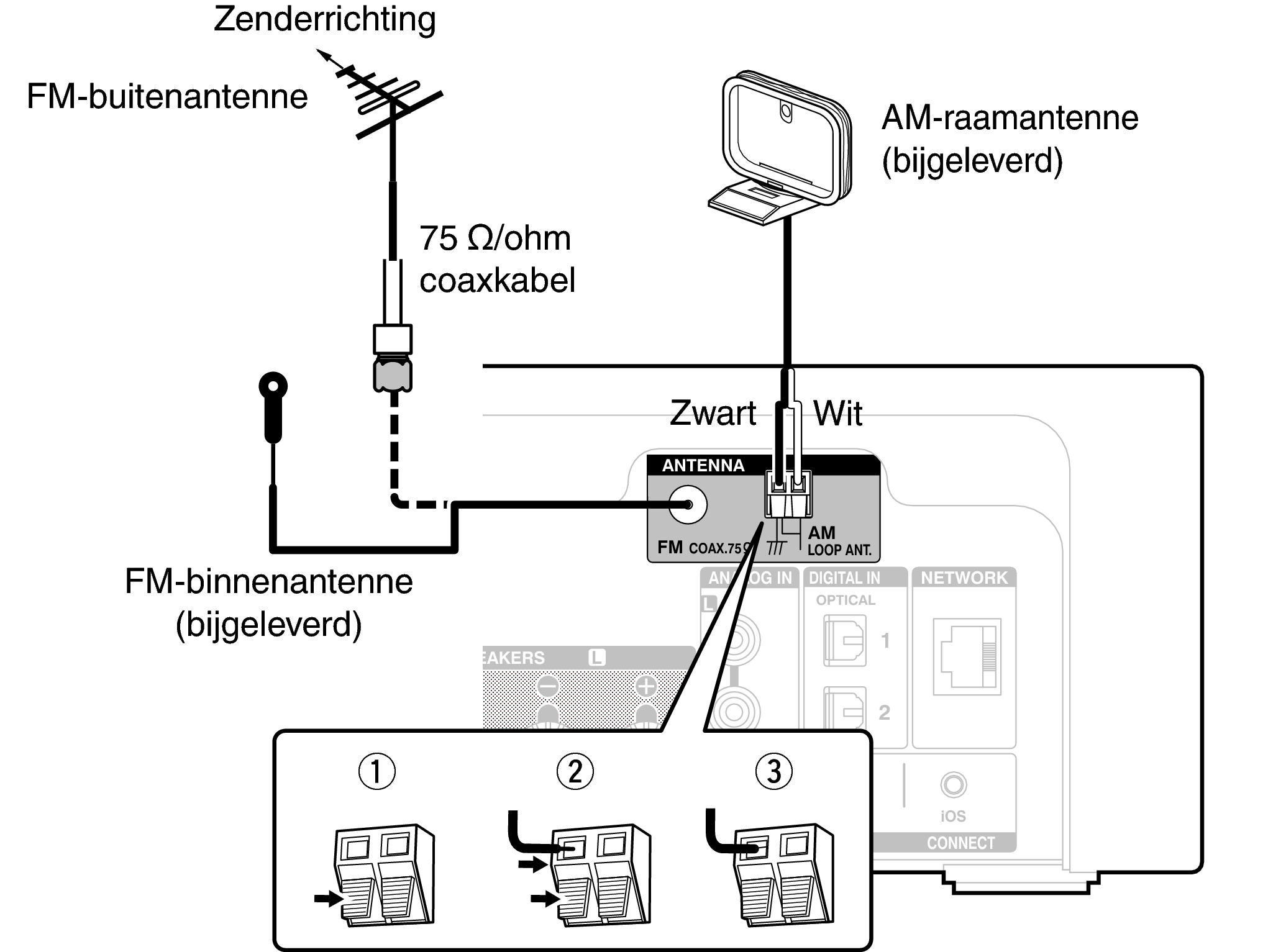 Koppel de AM-raamantenne niet los, zelfs wanneer de AM-buitenantenne is aangesloten.