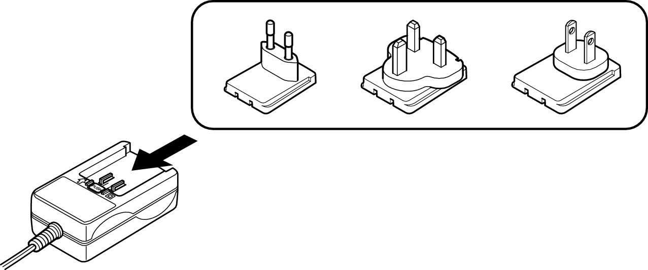Fixez la fiche de l’adaptateur qui convient à la prise d’alimentation dans votre région, comme indiqué ci-dessous :