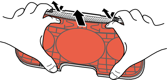 Introduzca los dedos en los orificios de tensión de plástico del bastidor del paño de la parrilla de plástico interior y suavemente presione hacia usted hasta que el bastidor se eleve y se aleje de la parrilla metálica.