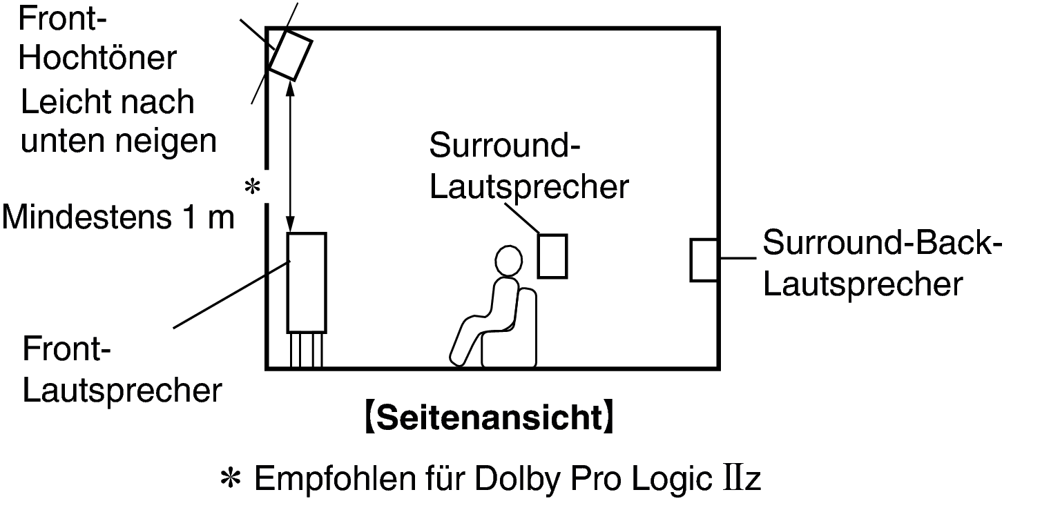 Wenn Sie einen einzigen Surround-Back-Lautsprecher verwenden, stellen Sie diesen direkt hinter der Hörposition auf.