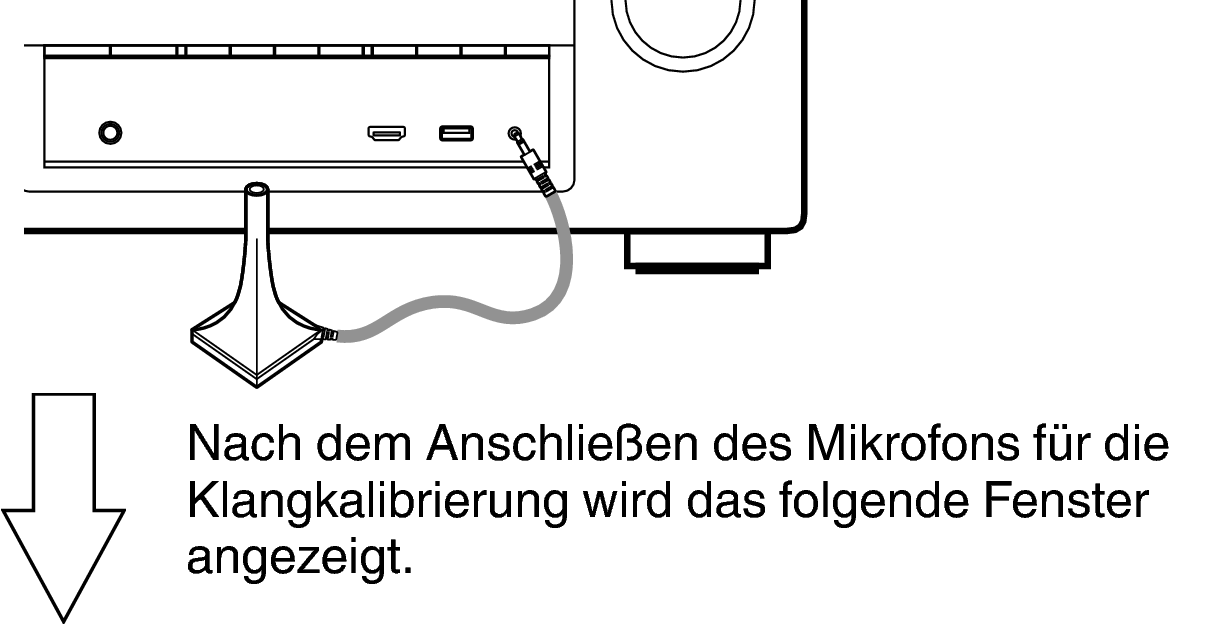 Wenn Sie das Mikrofon für die Klangkalibrierung aufstellen, richten Sie dessen Spitze zur Decke und stellen Sie die Höhe so ein, dass es sich in der Höhe der Ohren eines sitzenden Zuhörers befindet.