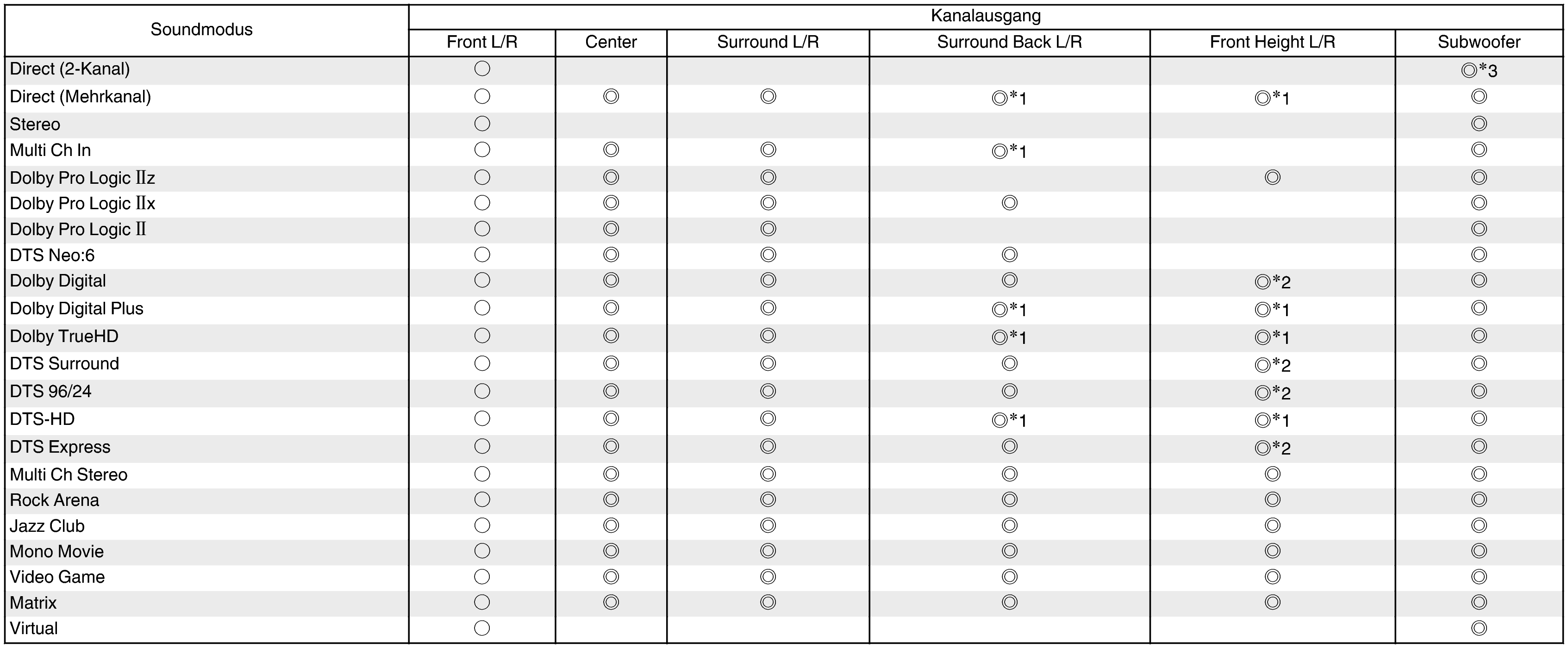 Zeigt die Audioausgangskanäle an.Die Ausgangskanäle sind von den Einstellungen unter “Lautspr.-Konfig.” abhängig.Link