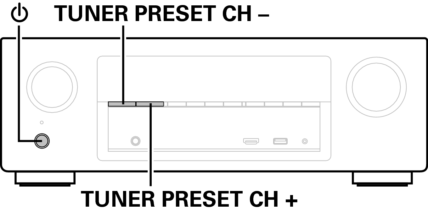 und gleichzeitig TUNER PRESET CH + und TUNER PRESET CH -.
