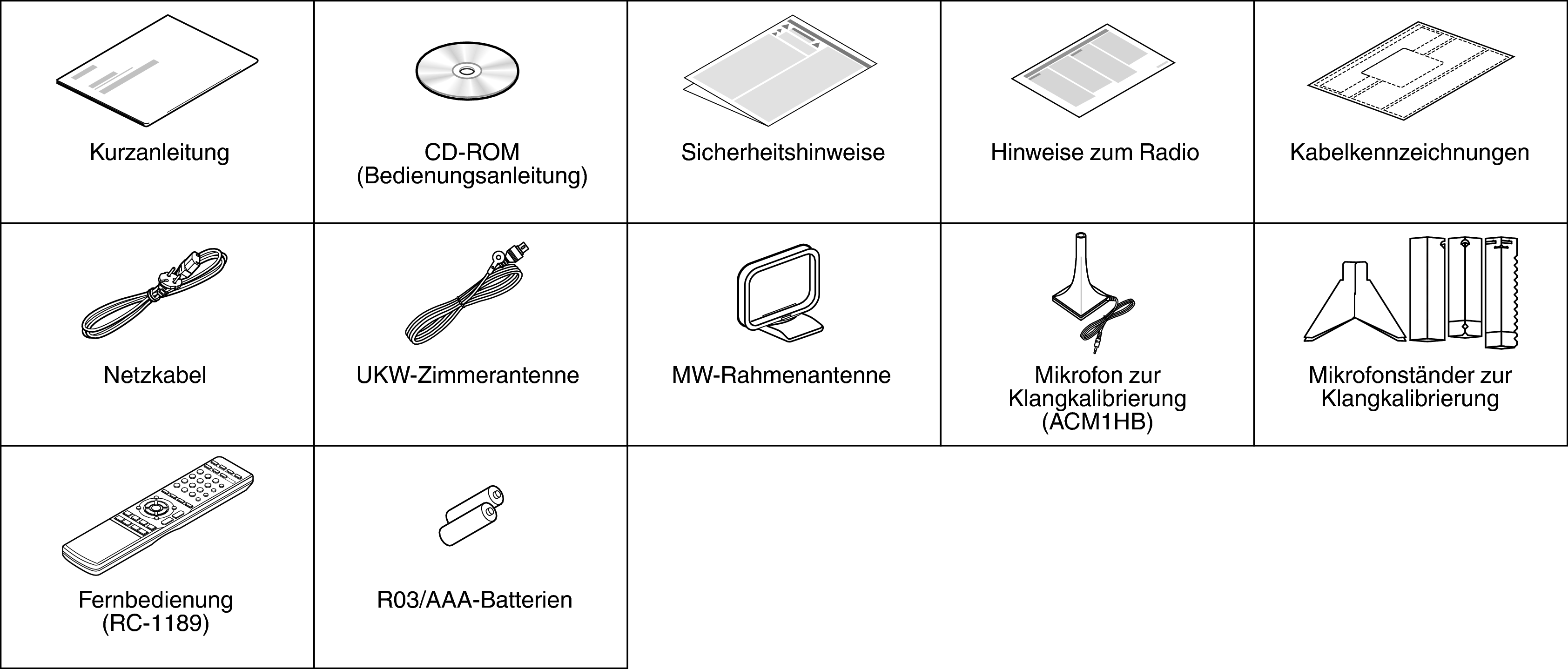 Überprüfen Sie, ob folgendes Zubehör im Lieferumfang des Produkts enthalten ist.