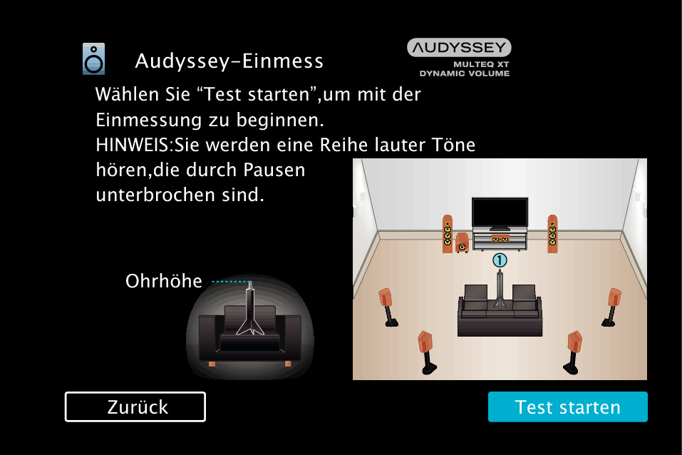 Verfahren für Lautsprechereinstellungen (Audyssey® -Einmessung)