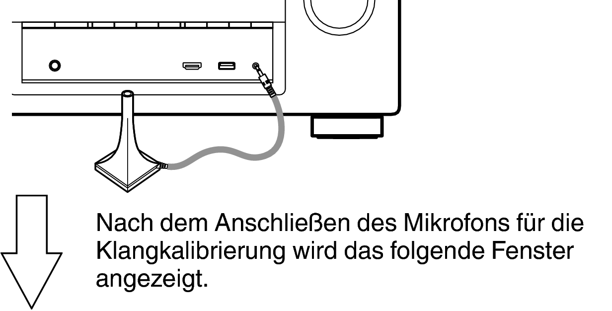 Wenn Sie das Mikrofon für die Klangkalibrierung aufstellen, richten Sie dessen Spitze zur Decke und stellen Sie die Höhe so ein, dass es sich in der Höhe der Ohren eines sitzenden Zuhörers befindet.