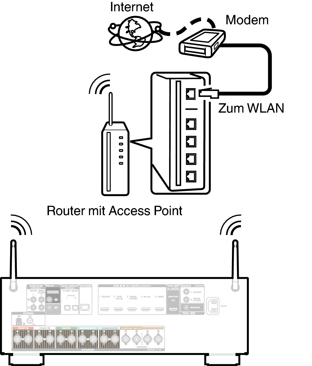 Weitere Informationen zum Anschließen eines WLAN-Routers finden Sie unter “WLAN-Konfig.”. Link