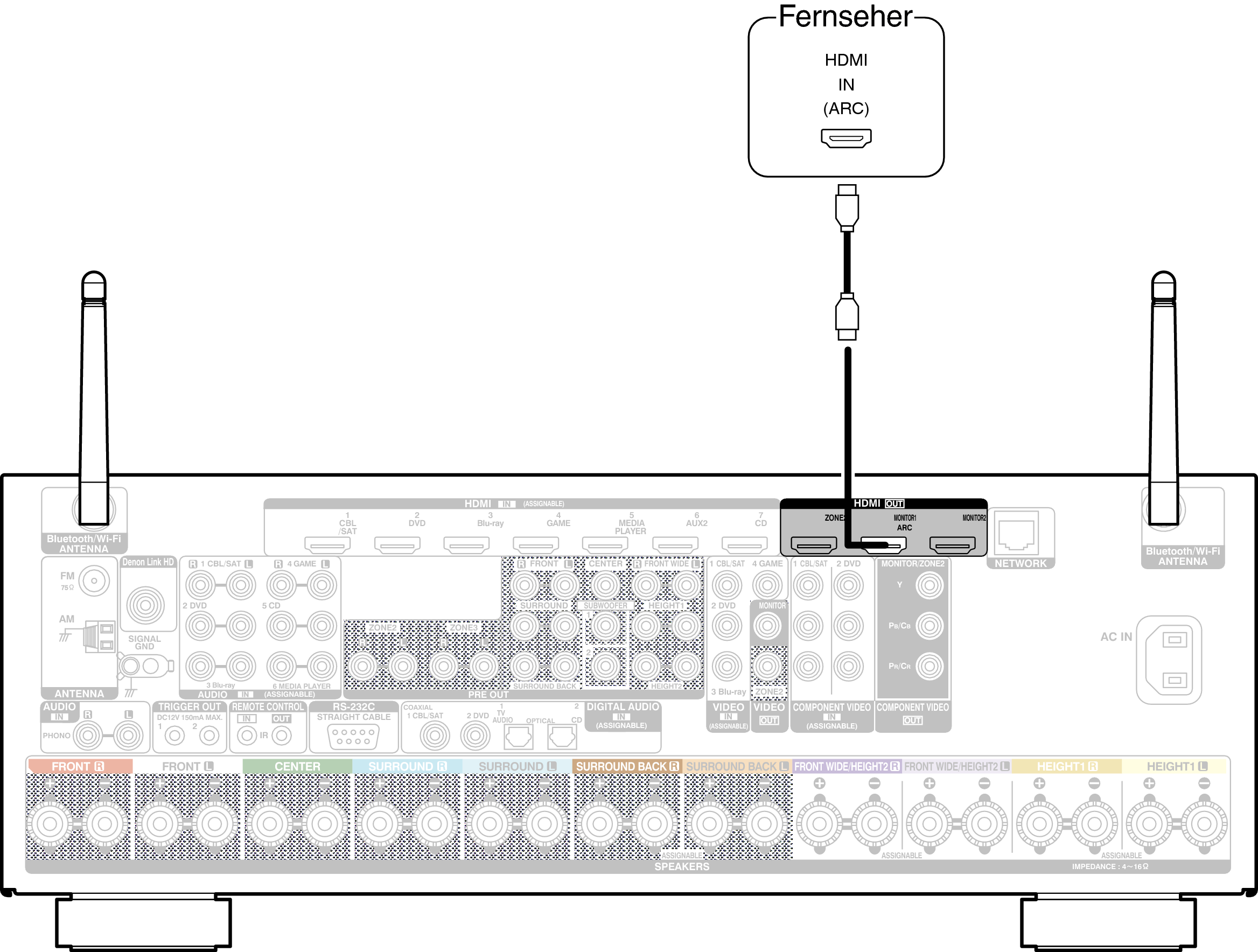 Verwenden Sie ein HDMI-Kabel, um einen mit der ARC-Funktion dieses Geräts kompatiblen Fernseher anzuschließen.
