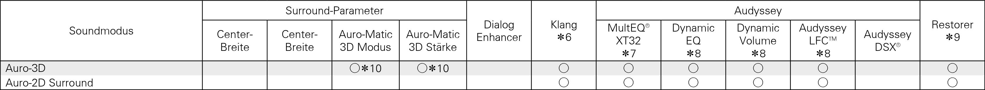∗1 - ∗3, ∗6 - ∗10 : Klangmodi und Surround-ParameterLink