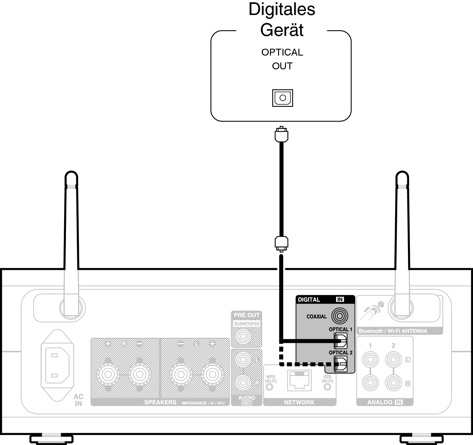 Sie können dieses Gerät an Geräte mit einem digitalen Audioausgang anschließen.